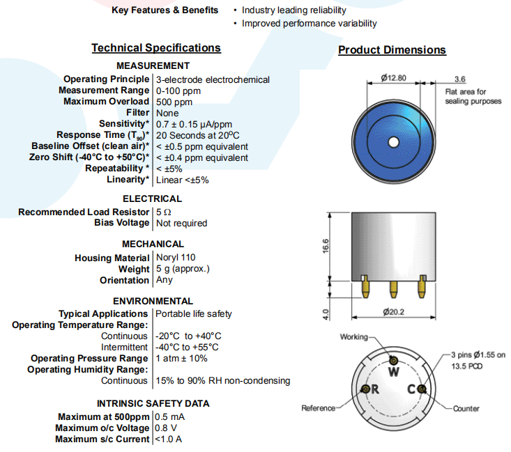 CITY CiTiceL 4CFC氣體傳感器